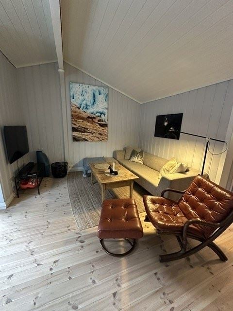 Etter en dag med aktiviteter kan du slappe av i stuen som er utstyrt med sofa og tv.
