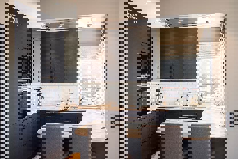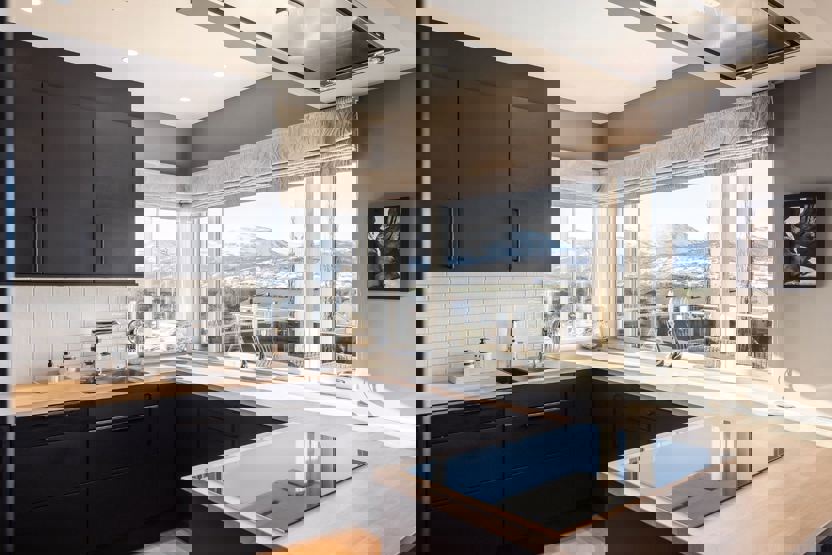 På kjøkkenet finner du komfyr, kjøleskap, fryser, mikrobølgeovn, oppvaskmaskin og kaffetrakter.