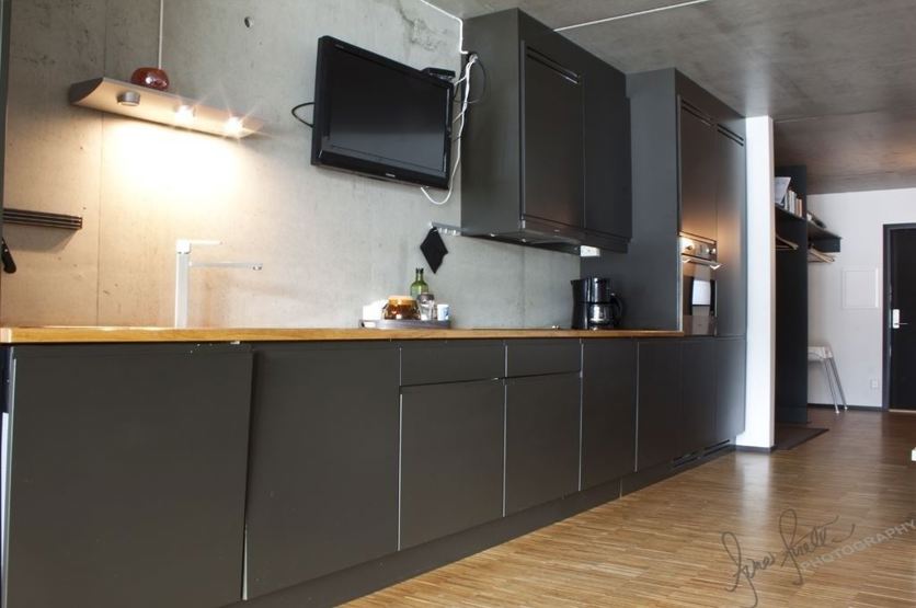 StudioH A307 tilbyr alt du trenger for et avslappende opphold. På kjøkkenet finner du komfyr, kjøleskap, fryser, oppvaskmaskin, kaffetrakter og Tassimo kapselmaskin.