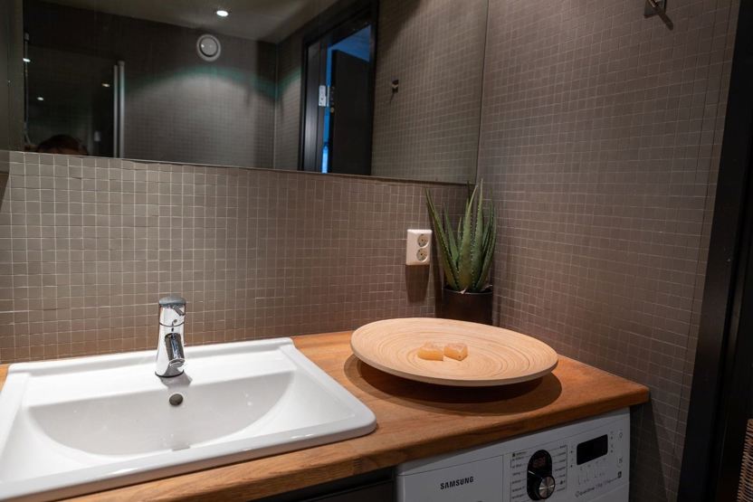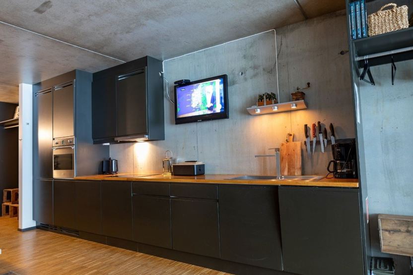 StudioH B203 tilbyr alt du trenger for et avslappende opphold. På kjøkkenet finner du komfyr, kjøleskap, fryser, oppvaskmaskin og kaffetrakter.
