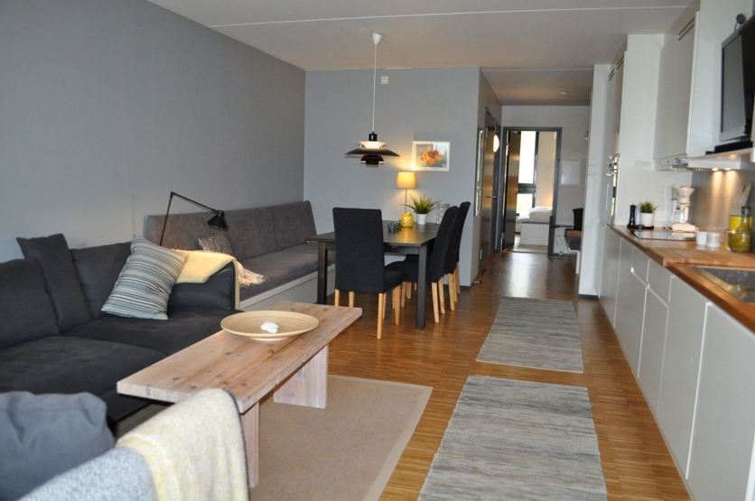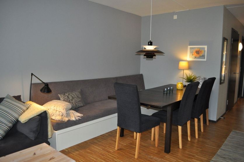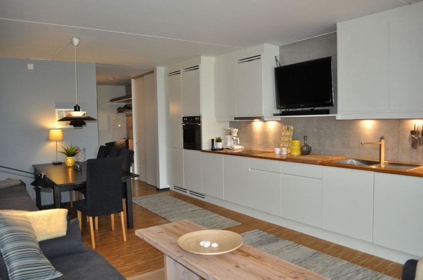 Lejlighed B101 - 6+1 personer. Lejlighed på 51 kvm. 2 soveværelser. Åben planløsning med fuldt udstyret køkken med spiseplads til 7 personer. TV-stue med sofagruppe.1 bruser, 1 WC, vaskemaskine. Terrasse. Adgang til skibod. Lejligheden er privatejet, interiør kan variere.