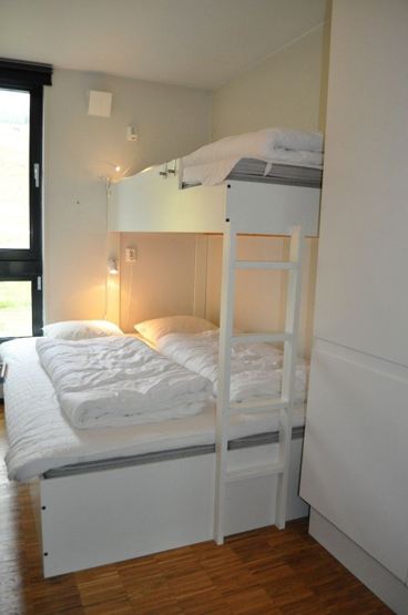 Soveværelse 1: 2 køjesenge (80cm x 200cm). Soveværelse 2: 1 familiekøjeseng (150cm x 80cm x 200cm).
