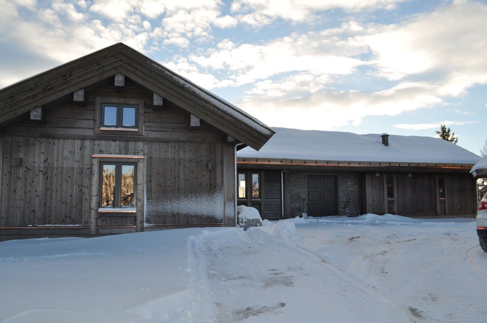 Svartskardvegen 185, Hytte med høj standard og flot beliggenhed 950 m.o.h. Ligger på den øvre del af Kvitfjells Vestside. Her er Ski in / Ski out via skiveje 1200 m der fører ud i systemet. Kort afstand til langrend. I bunden ligger Skitorget med børneområde, skiskole, skiudleje og restauranter (i bil ca. 3,5 km). Vestsiden, som er den familievenlige fjeldside byder på brede grønne, blå og røde pister. En 250 meter lang gondollift forbinder Vestsiden med den fjeldsiden Varden.