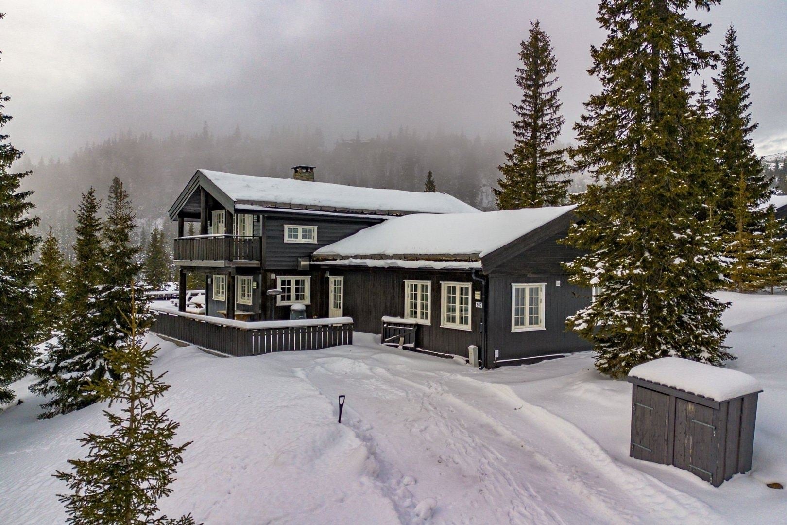 Svartskardvegen 387, Lys og moderne hytte i 2 etager. Beliggende flot og højt 950 m.o.h. på den øvre del af Vestsiden på Kvitfjellet. Her er kort vej til pisten via transportløje 80 m der fører ud i systemet. Langrendsløjperne udgår tæt på hytten. I bunden ligger Skitorget med børneområde, skiskole, skiudleje og restauranter. Vestsiden, som er den familievenlige fjeldside byder på brede grønne, blå og røde pister. En 250 meter lang gondollift forbinder Vestsiden med fjeldsiden Varden.