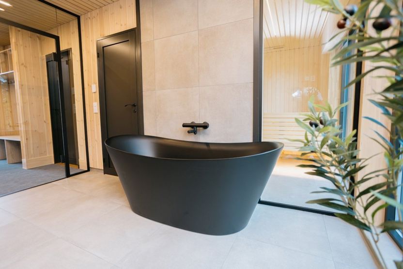 Bad 1: Dusj, servant, toalett og badstue