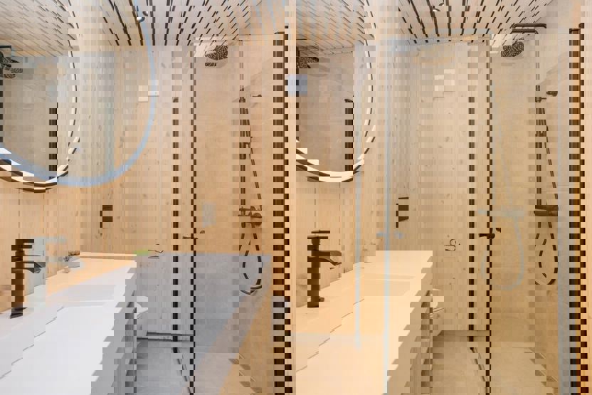 Bad 1: Dusj, servant, badekar,toalett og badstue