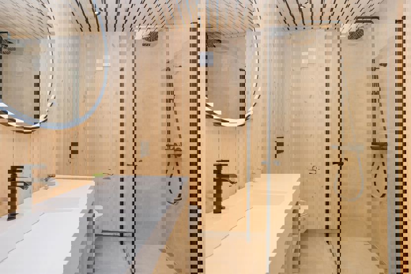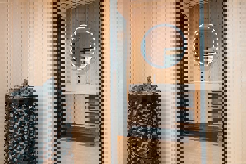 Bad 1: 1 bruser, 1 WC, sauna. Bad 2: 1 bruser, 1 WC