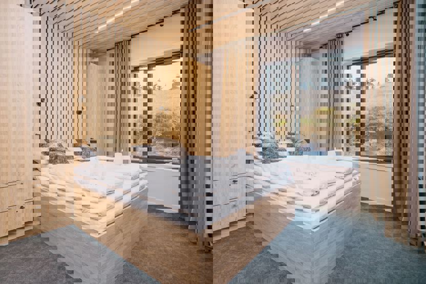 Soveværelse 1+2: 1 dobbeltseng (160cm x 200cm). Soveværelse 3+4: 1 familiekøjeseng 140 cm/ 90cm x 200cm.