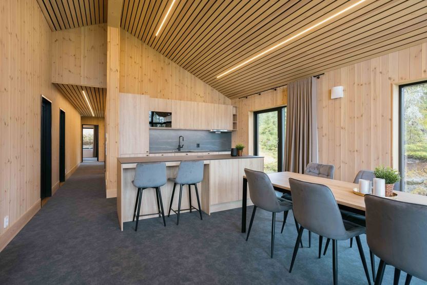 Varden Chalet 5 Hytte i 2 etager, 10 senge, 124 kvm, 4 soveværelser. Åben planløsning med fuldt udstyret køkken med spiseplads til 10 personer. Opholdsstue med spisebord og sofagruppe, brændeovn, TV. 2 brusere, 2 WC, 1 sauna. Vaskemaskine, tørretumbler. Velværerum med badekar. Mulighed for opladning af el-bil mod betaling. Bilvej frem. Hytten er privatejet, interiør kan variere. De viste billeder er illustrationer.