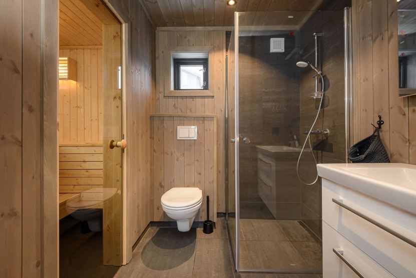 Bad 1: 1 bruser, 1 WC, sauna. Bad 2: 1 bruser, 1 WC