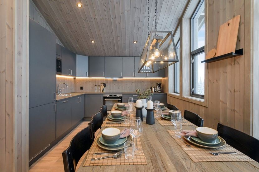 Varden Fjellandsby 220. Hytte med høj standard og udsøgt beliggenhed i Kvitfjells nyeste fjeldområde . Her bor man tæt på både alpin og langrend, et populært område for dem der vil prøve begge dele med Ski in / Ski out. Transportgondol knytter området til Vestsiden og en 6-sæders stolelift går til toppen af den nye fjeldside. På toppen af Varden finder du Varden restaurant, og med gondolen, som går over vestsiden, er du tæt på skiudlejning, sportsbutik, dagligvarer, flere restauranter og afterski. Varden har 5 km familievenlige piste alle grønne eller blå, som gør området perfekt for hele familien. Børnenes favorit Vardeskogen er en skovløjpe med spændende figurer.