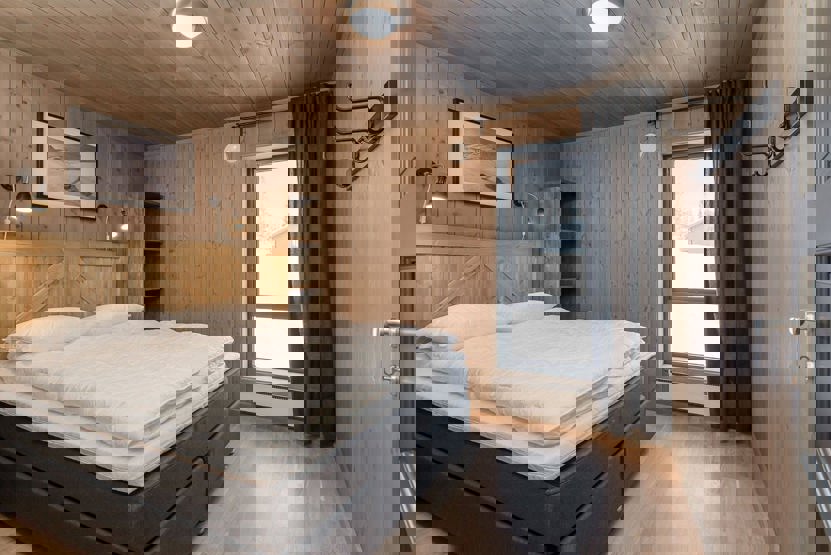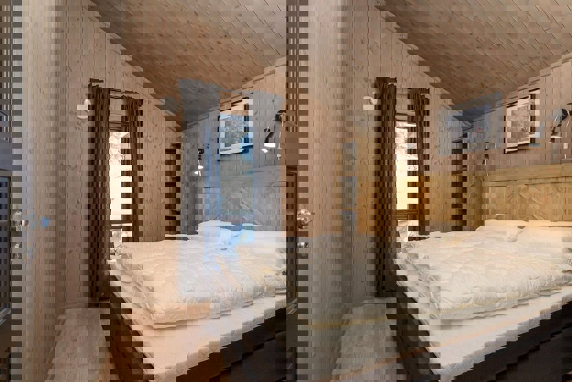 Soveværelse 1+2: 1 dobbeltseng (150cm x 200cm). Soveværelse 3+4: 1 familiekøjeseng 140 cm/ 90cm x 200cm.