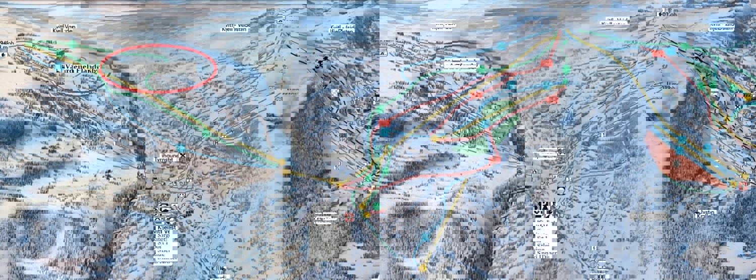 Afstande: skilift 75 m, bakke 75 m, langrendsløjper 100 m. Afhængigt af sneforholdene kan afstanden til lift/bakke variere.
