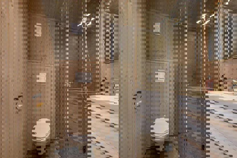 Bad 1: 1 bruser, 1 WC, sauna. Bad 2: 1 bruser, 1 WC