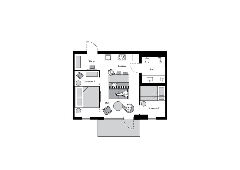 Lejlighed D2.3 - 5 personer. Lejlighed på 57 kvm. 2 soveværelser. Åben planløsning med fuldt udstyret køkken med spiseplads til 5 personer. TV-stue med sofagruppe. 1 bruser, 1 WC. Skiskab. Vaskemaskine og tørretumbler. Balkon.