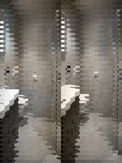 To fullverdige bad, ett i hver etasje. Fra kjøkken/stueområdet kan du gå ut på en romslig balkong.