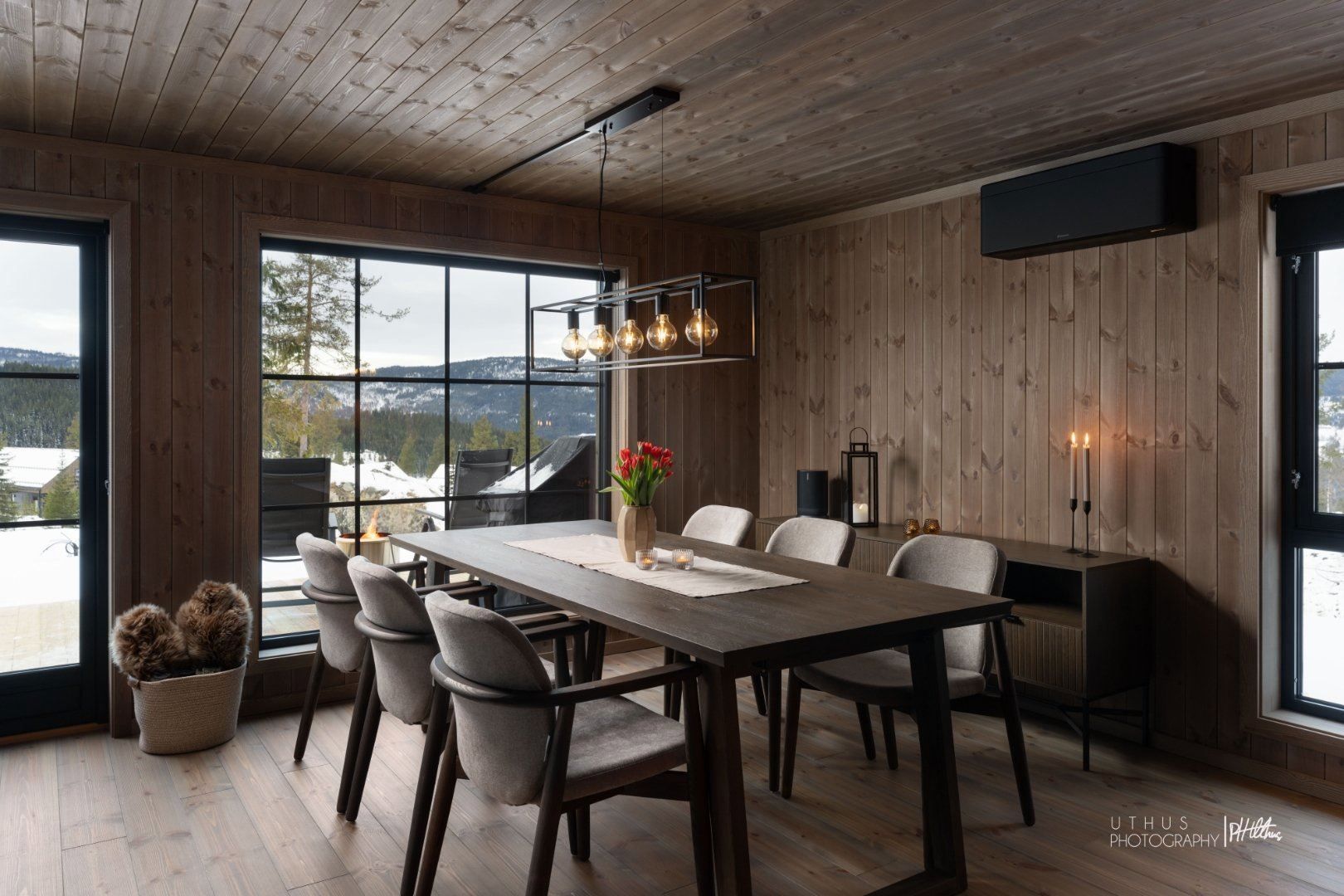 Innvendig møter du et moderne og gjennomført interiør, med materialer av høy kvalitet som gir en lun og eksklusiv atmosfære. Denne hytta er bygget for å gi deg følelsen av et hjem borte fra hjemmet – med alt du trenger for et avslappende og minneverdig opphold.