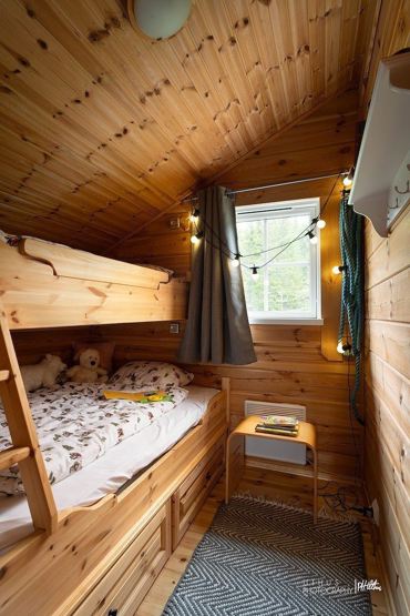 Sov 3 inneholder en familiekøye med underkøye 120 cm og overkøye 90 cm, plass til to voksne