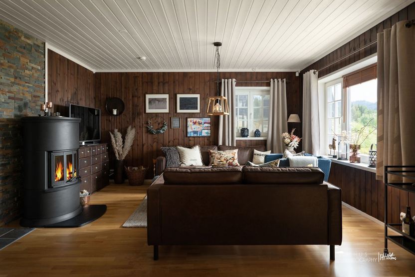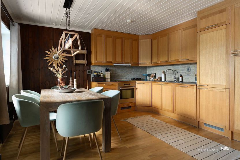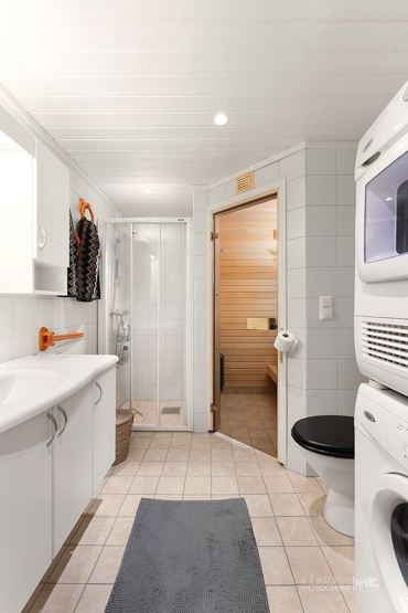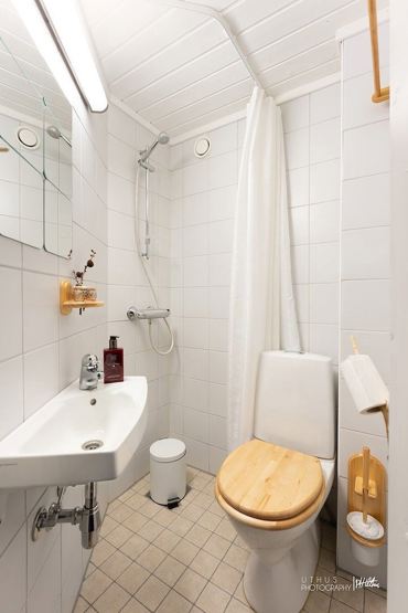 Leiligheten har to bad, badstue er ikke tilgjengelig. Stue og kjøkkenområde er kombinert og gir et koselig fellesområde, samt peis.