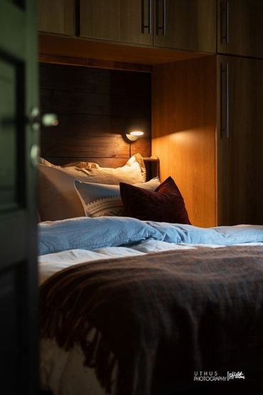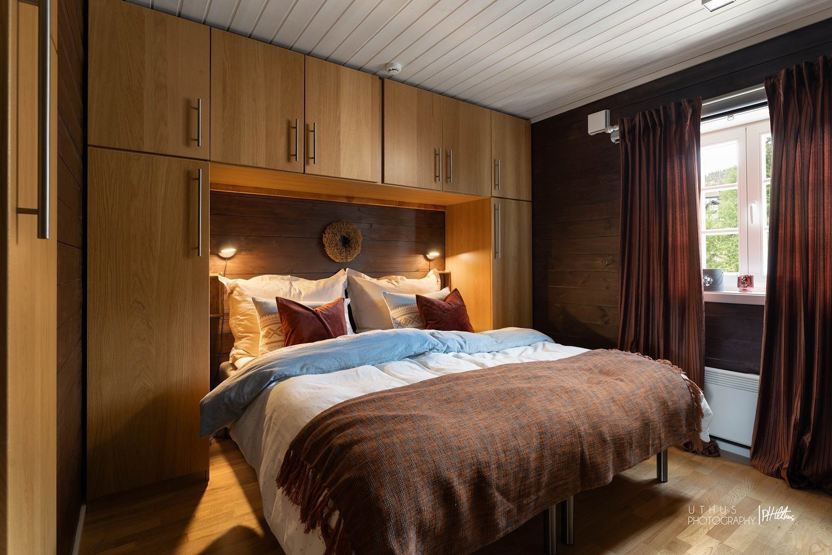 Fjellsol har 5 standard sengeplasser, men med god størrelse på sengene er det plass til 5 voksne+2 barn.