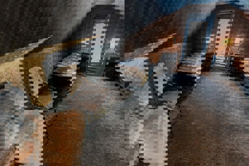 Kveldsro har 5 soverom og totalt 11 sengeplasser, fordelt på en praktisk planløsning som gjør det enkelt å samles – men også trekke seg tilbake ved behov. Hytta har ett moderne bad med dusj og toalett, samt et ekstra separat WC for ekstra bekvemmelighet.