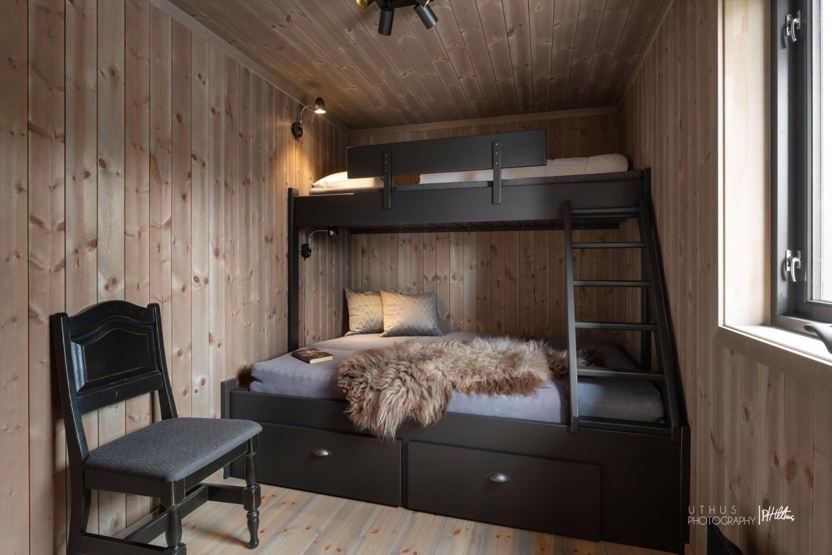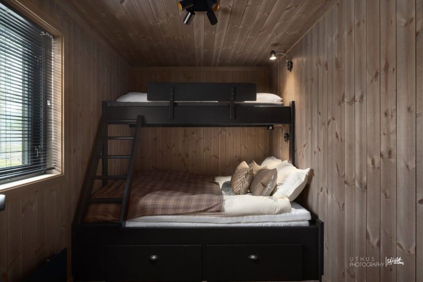 Sov 3 inneholder en familiekøye med underkøye 150 cm, og overkøye 90 cm