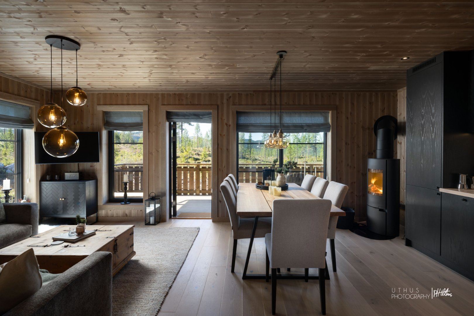 Leiligheten går over ett plan, med kjøkken, spiseplass og stue i åpen løsning og utsikt mot fjellene. Her er det lagt vekt på kvalitet i materialvalg og utførelse. Leiligheten har plassbygde senger og garderobeløsninger, og et kjøkken levert av lokalt møbelsnekkeri – en kombinasjon som gir både funksjon og særpreg.