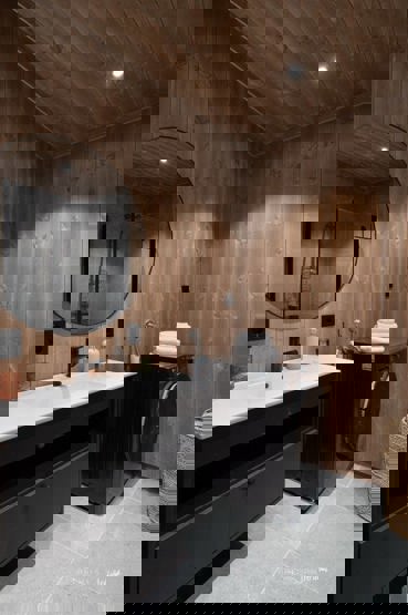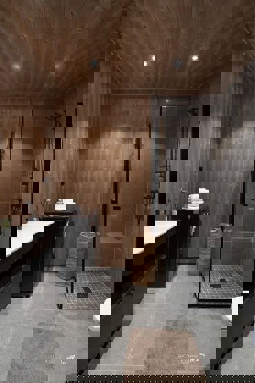 Leiligheten har ett romslig og moderne bad, samt et ekstra WC-rom