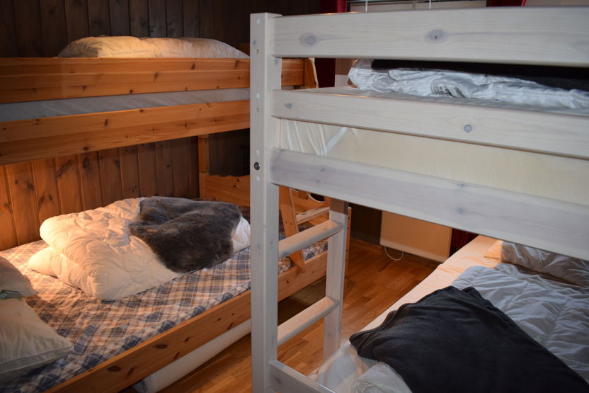 Soveværelse 1: 1 dobbeltseng . Soveværelse 2: 2 køjesenge. Soveværelse 3: 1 dobbeltseng.