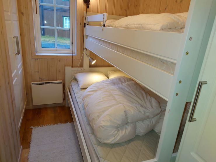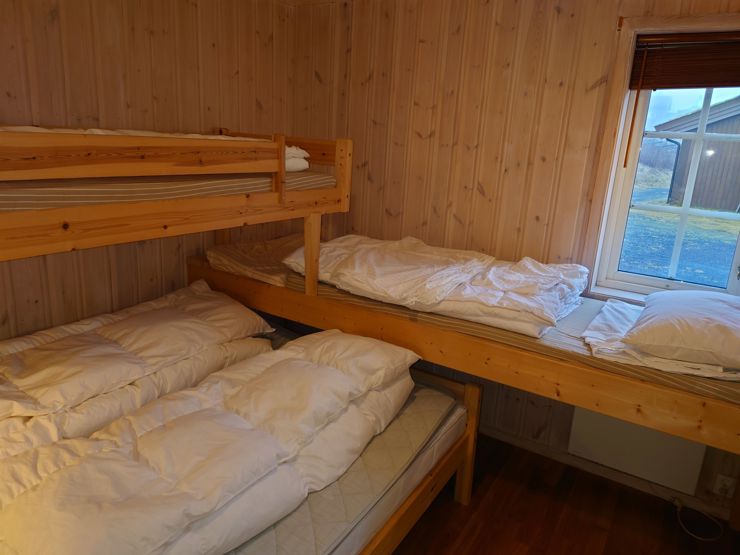 Soveværelse 1: 1 familiekøjeseng 120 cm bred underkøje. Soveværelse 2: 1 familiekøjeseng + 1 vægseng.