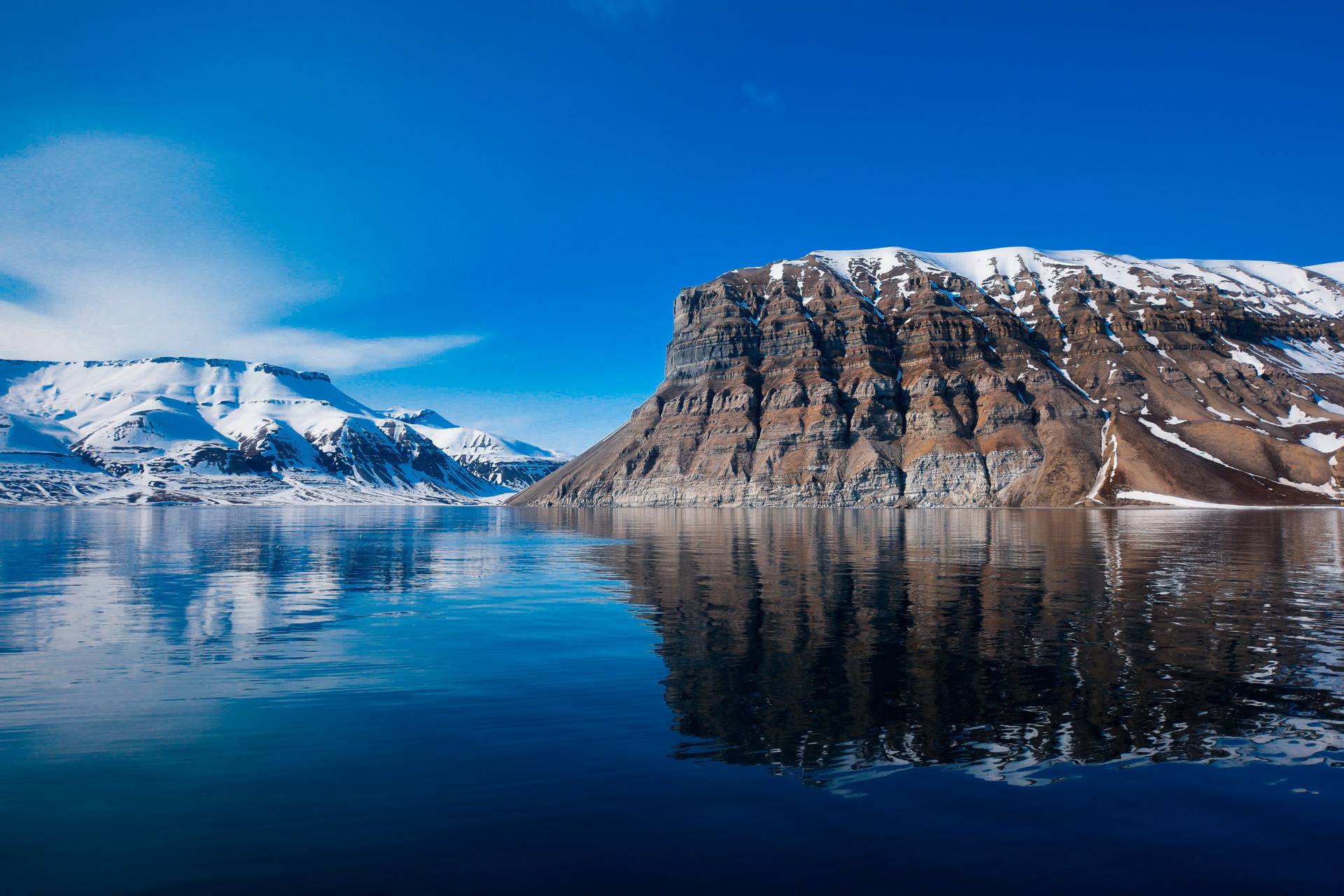 Vi ankommer på Spitsbergen, der er den største af øgruppen Svalbards tre hovedøer. Storslåede brune og grønne fjelde rager op og breder sig fra den højarktiske tundra, mens floder med smeltet sne risler gennem dalens sletter og glimter under sommersolen. Brug et øjeblik på bare at mærke stemningen her på Svalbard. Vi er på en breddegrad på mere end 78° Nord og kun 1307 kilometer fra selve Nordpolen. Luften i den arktiske vildmark er frisk og ren, og temperaturen om sommeren ligger gennemsnitligt på mellem nul og otte grader Celsius, takket være Golfstrømmens nordlige del.