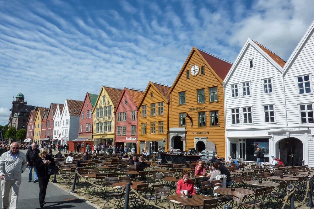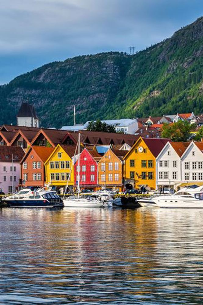 Bergen, hovedstaden i Vestnorge er smuk uanset vejret. Inden din rejse begynder, så tag dig tid til at lære byen mellem de syv bjerge at kende. I centrum finder du Vågen og byens historiske kerne, for ikke at nævne Bryggen, der er på UNESCO's verdensarvsliste. Ved siden af ligger Fisketorget, hvor du kan nyde friske og fristende fisk og skaldyr, og hvis du tager en tur op på Fløyfjellet, får du en fantastisk udsigt over byen, havet og de nærliggende bjerge.