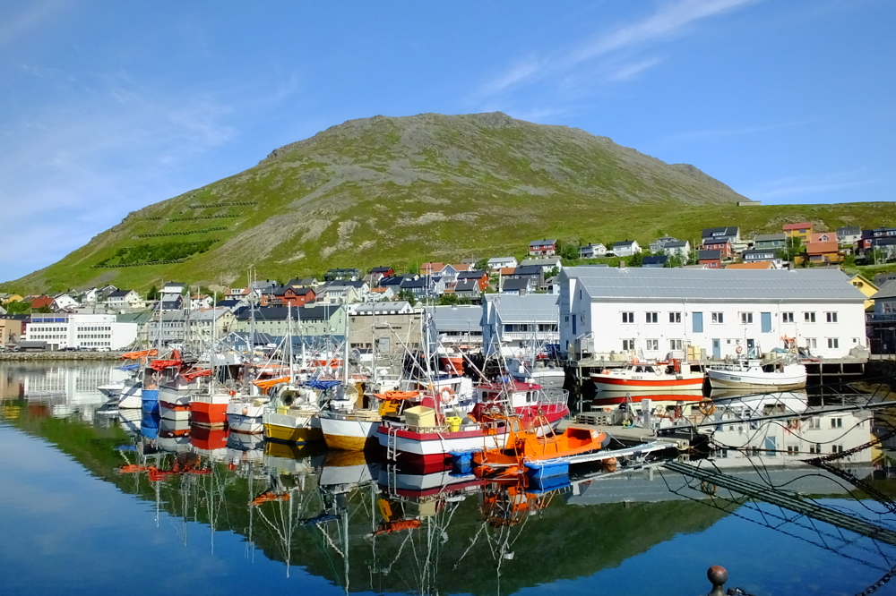 Om morgenen ankommer vi i Honningsvåg, der er den nordligste by på Norges fastland. Honningsvåg er ung by - fra 1996 - og fortsat en af Norges mindste byer.