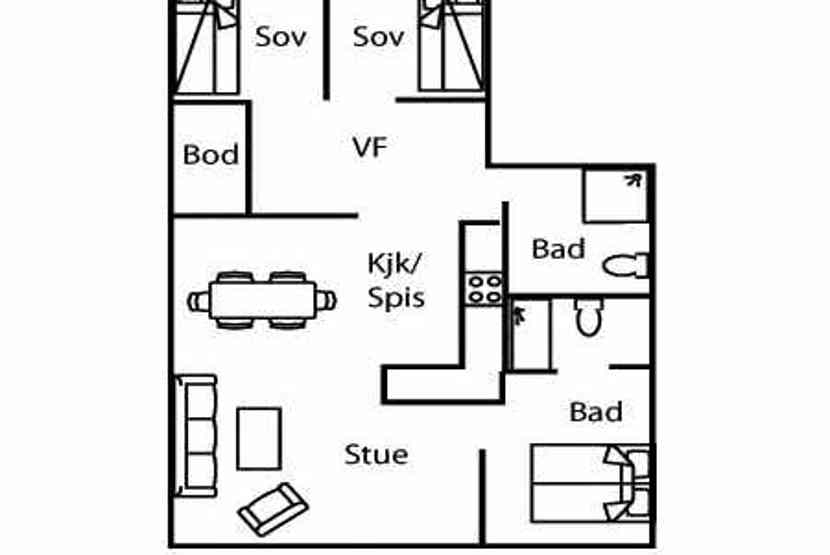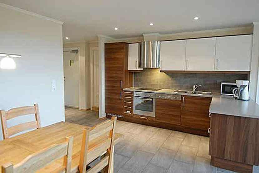 Lejlighed i stueetage, 6 sengepladser, 74 m², opholdsstue med gaspejs, TV og køkkenafdeling, 3 soveværelser, 2 brusere, 2 WC. Skiopbevaring, 1 garageplads, maks højde garageplads 220 cm, tørrerum.