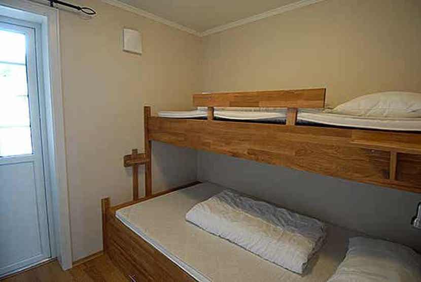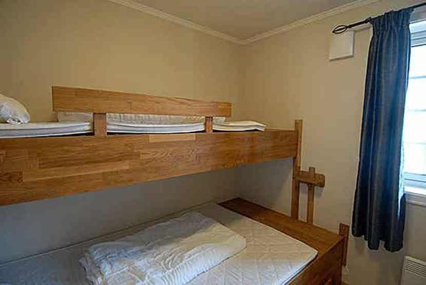 Soveværelse-1= 1 dobbeltseng. Soveværelse-2= 1 køjeseng med 120 cm bred underkøje. Soveværelse-3= 1 køjeseng med 120 cm bred underkøje.