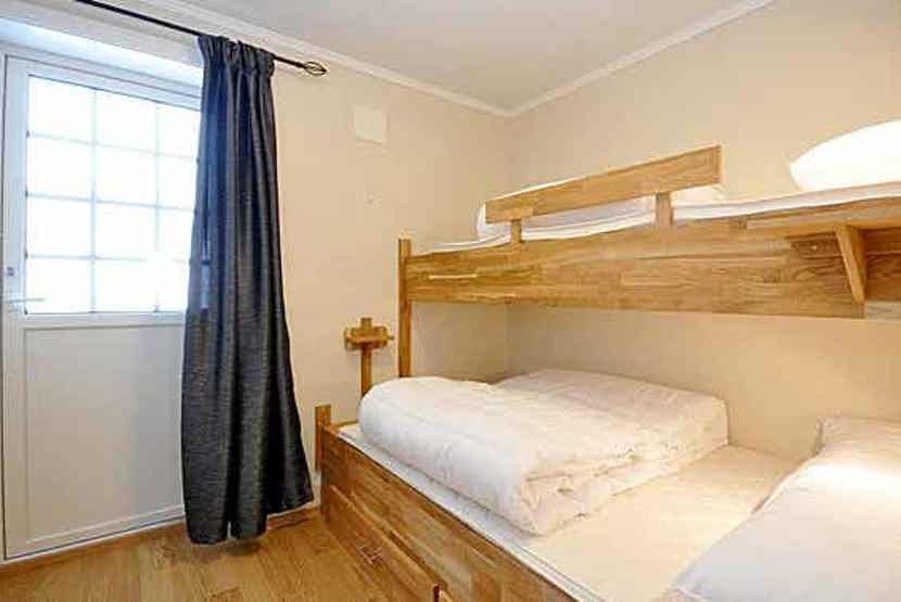 Soveværelse-1= 1 dobbeltseng. Soveværelse-2= 1 køjeseng med 120 cm bred underkøje. Soveværelse-3= 1 køjeseng med 120 cm bred underkøje.