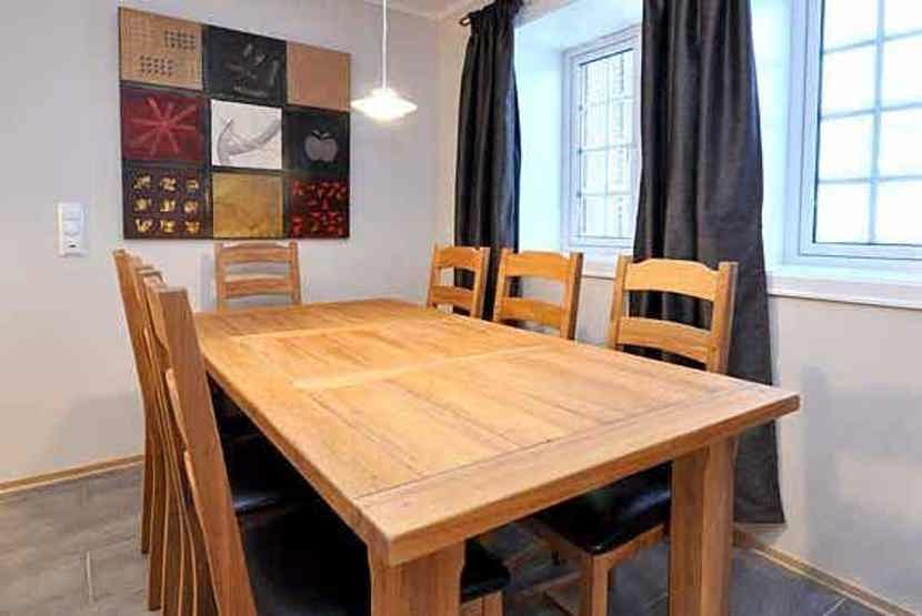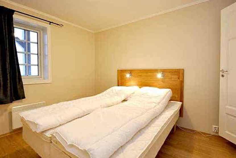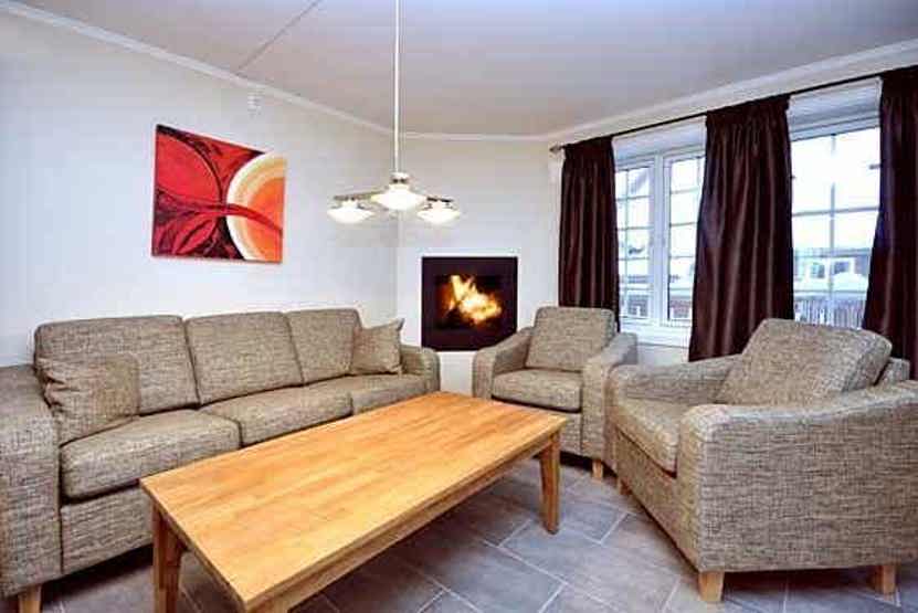 Lejlighed på 1 sal, 8 sengepladser, 70 m², opholdsstue med gaspejs, TV og køkkenafdeling, 3 soveværelser, 2 brusere, 2 WC. 1 garageplads, maks højde garageplads 220 cm