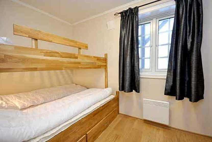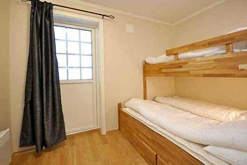 Soveværelse-1= 1 dobbeltseng. Soveværelse-2= 1 køjeseng med 150 cm bred underkøje. Soveværelse-3= 1 køjeseng med 150 cm bred underkøje.