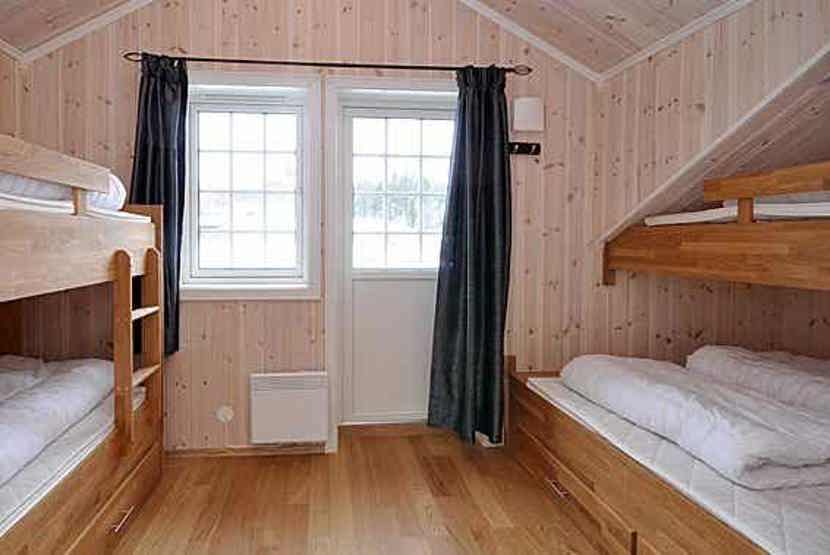 Soveværelse-1= 1 dobbeltseng. Soveværelse-2= 1 køjeseng med 150 cm bred underkøje, 1 enkeltseng.