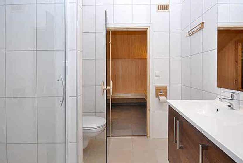 Bad 1 med bruser og WC. Bad 2 med bruser, WC, sauna og badekar.