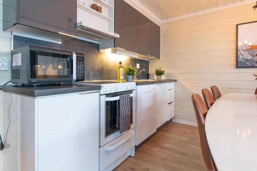 Køkken: Enheden har køleskab, fryser, opvaskemaskine, mikrobølgeovn.