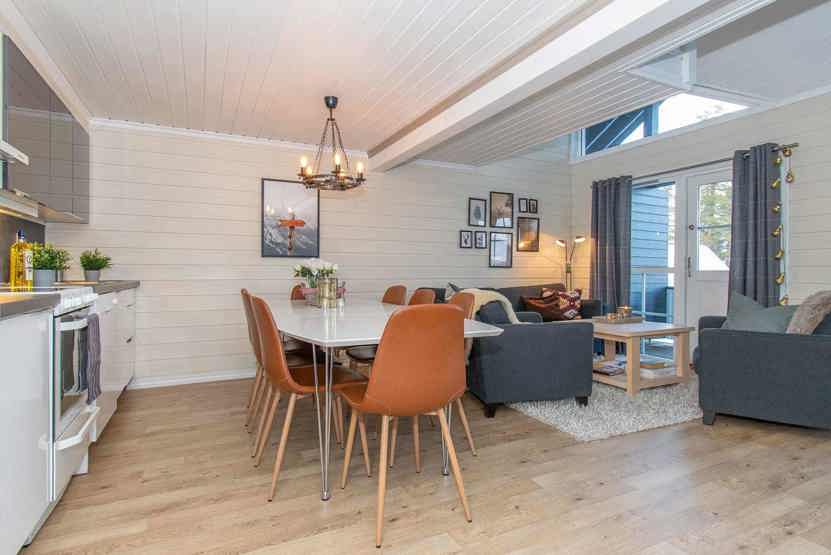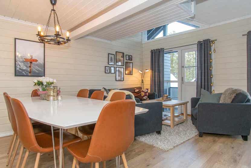 Almenlia 6+2 personers lejlighed, på sydsiden af Trysilfjellet, nedenfor Skihytta og børneområdet. Flot udsigt over Trysilfjeldet. Her er ski in/ ski out til Libakken nr. 13 og 50 m til transportløjpen,der fører til pisten. Har man helt små børn, anbefales det at benytte skibussen ned til Trysil Turistsenter, hvor den nærmeste skiskole ligger. Lejligheden ligger på 1 sal og er i 2 etager. Stort rummeligt køkken / spiseafdeling. Stue i forlængelse af køkkenafdeling med TV, brændeovn. 3 soveværelser (Nogle er lavloftet og med skrå vægge). 2 brusere, 2 WC, 1 sauna.