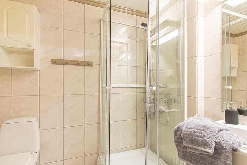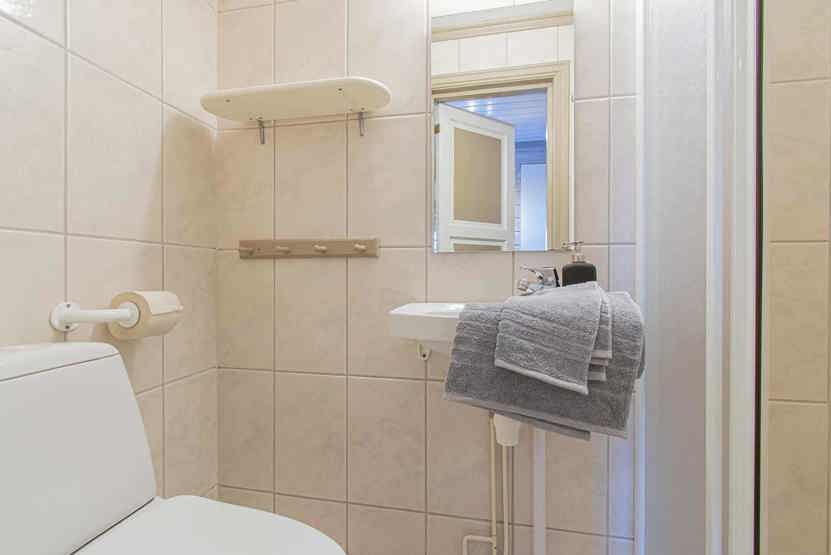 Bad 1: bruser og WC. Bad 2: bruser, WC og sauna.