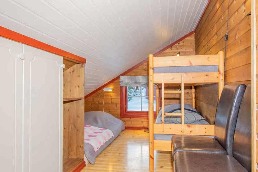 Soveværelse 1: 1 dobbeltseng. Soveværelse 2: 1 køjeseng med 120 cm bred underkøje. Soveværelse 3: 1 køjeseng. Soveværelse 4: 1 enkeltseng 120 cm bred, 1 enkeltseng.