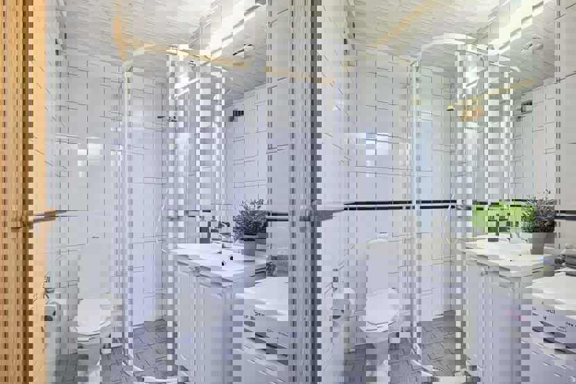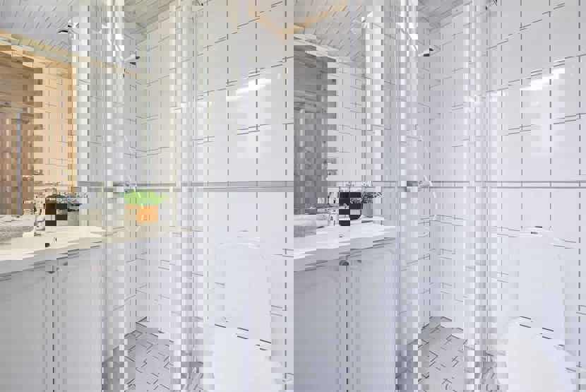 Badeværelser: Bad 1: Bruser og WC. Bad 2: Bruser, WC og sauna.