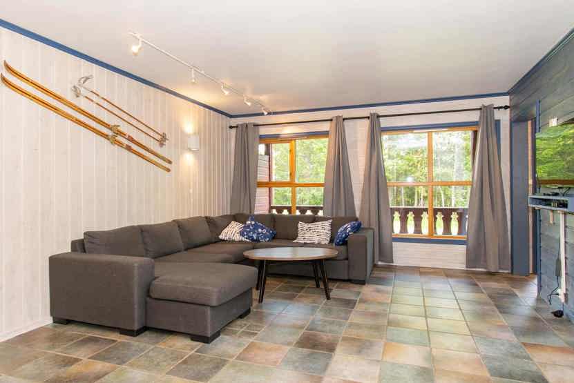 Lejlighed i stueetagen, 8 sengepladser, 83 m², opholdsstue med brændeovn, TV og køkkenafdeling. 3 soveværelser, 1 bruser, 2 WC, 1 sauna., vaskemaskine.