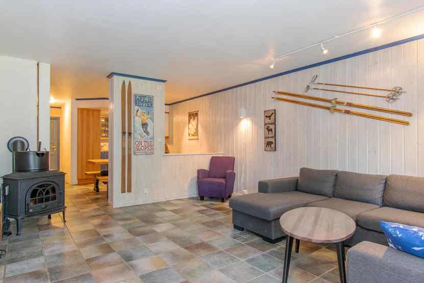 Bakkebygrenda 11C, Lejlighed 8 personer, ligger øverst i hytteområdet ved Trysil Turistcenter og Ski in / Ski out, 50 m til pist 19, der fører til Turistsenteret. .