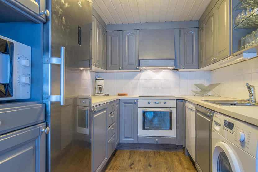 Enheden har komfur, ovn, opvaskemaskine, mikrobølgeovn, køleskab, fryser.