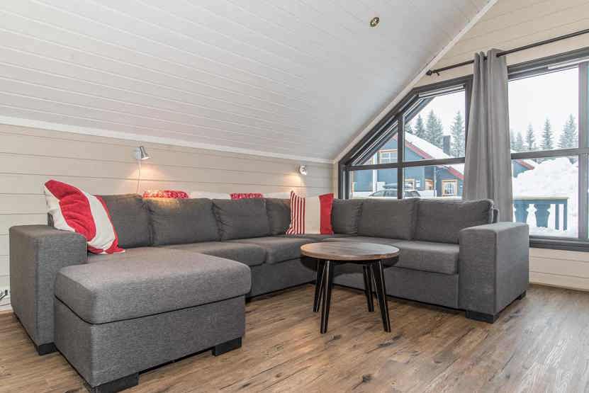 Bakkebygrenda 18A, Lejlighed 10 personer, ligger øverst i hytteområdet ved Trysil Turistcenter og Ski in / Ski out, 50 m til pist 19, der fører til Turistsenteret. .