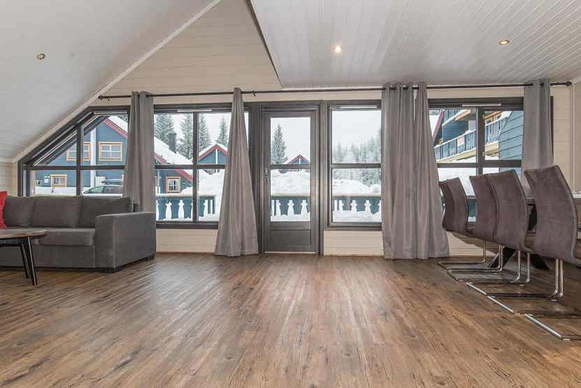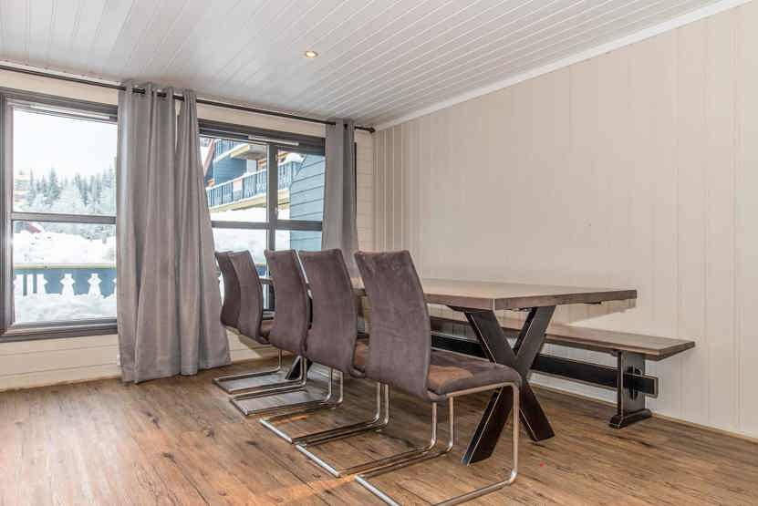 Lejligheden er i 2 etager og ligger på 1.sal, 10 sengepladser, 132 m², opholdsstue med pejs, TV og køkkenafdeling, spisebord og stole. 4 soveværelser, 2 brusere, 3 WC, 1 sauna, boblebad, vaskemaskine.